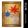 こちらは、金糸で表現された波頭に舞い散る色とりどりの紅葉。