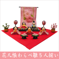 にっこり優しい表情のわらべ雛のお雛様とお内裏様、そして三人官女の