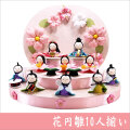 ちりめんの優しい風合いをいかした、豪華10人揃いの雛飾りです。