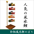 黒、赤、青、黄、緑の友禅調の和柄が美しい鯉のぼり。