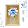 こちらは清楚で洗練された色彩の蓮華のリースとシンプルな木製ボックスに組み合わせです。