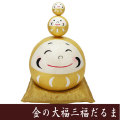 幸せ三倍の三福だるまに金色バージョンが登場。