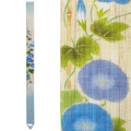 生成色の麻生地に紫や青紫の朝顔が描かれています。