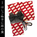 送料無料【粋】ほしご格子に麻の葉☆高級変わり織り浴衣☆4点セット☆ゆかた+作り帯+下駄+腰紐