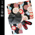 送料無料【雅】菊と雪輪☆高級変わり織り浴衣☆4点セット☆ゆかた+作り帯+下駄+腰紐